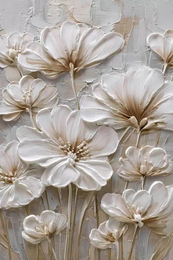 Poster crèmekleurige bloemen in imitatie-impastostijl N° f45712