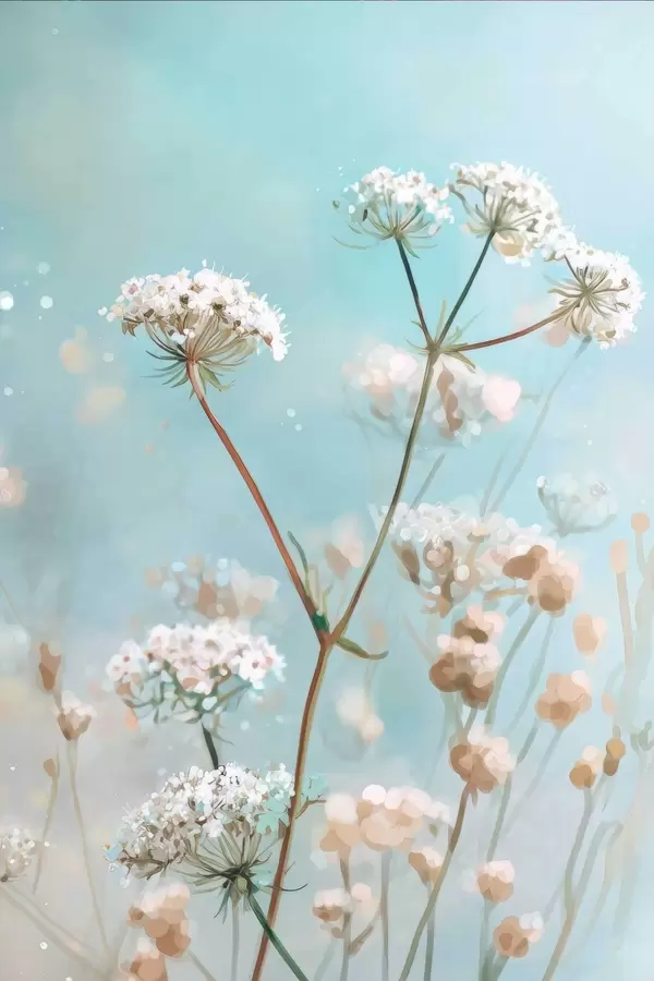 Poster Queen Anne's Lace-bloemen in aquarelstijl op een blauwe achtergrond f45722