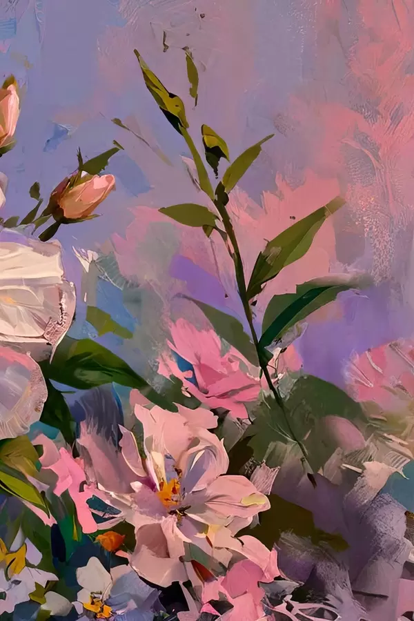 Poster roze bloemen in de stijl van een olieverfschilderij N° f45724