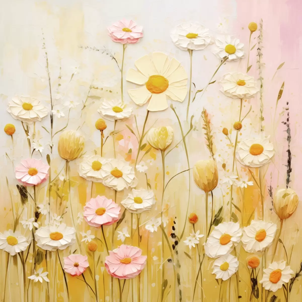 Poster Weidebloemen in olieverfstijl N° f45741