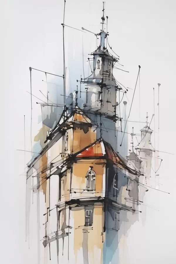 Poster Huizen imitatie schets en aquarel f45765