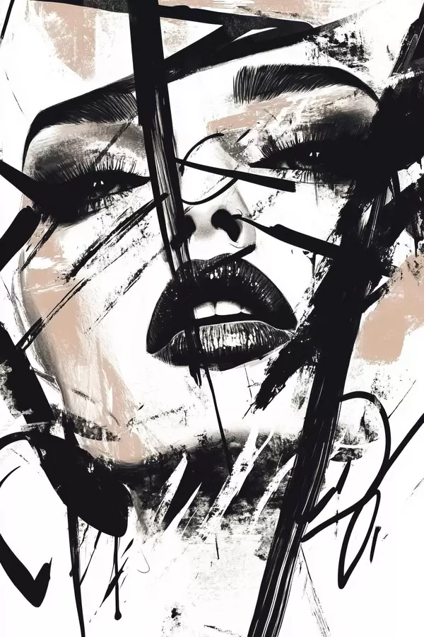 Poster Abstract portret van een vrouw in graffitistijl N° f45777