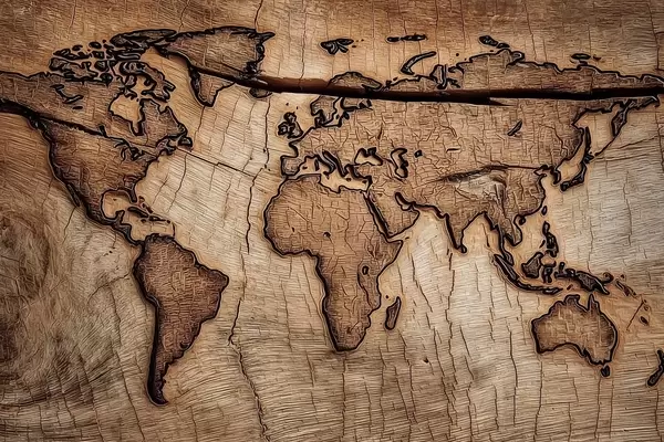 Poster Gegraveerde houten wereldkaart N° f45805