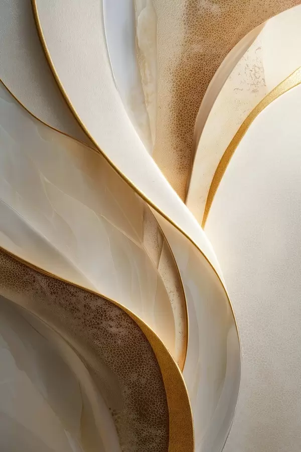 Poster Abstracte rondingen met geeloranje en beige accenten N° f45807