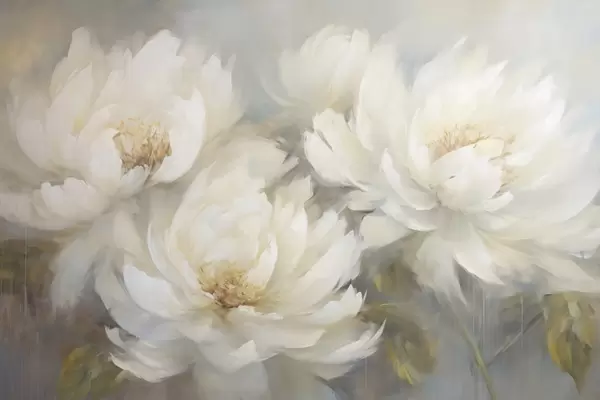 Poster Drie weelderige witte pioenrozen op een delicate achtergrond N° f45808