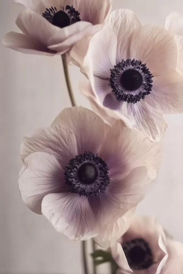 Poster Delicate anemonen met donkere hartjes, pastelkleurig N° f45875