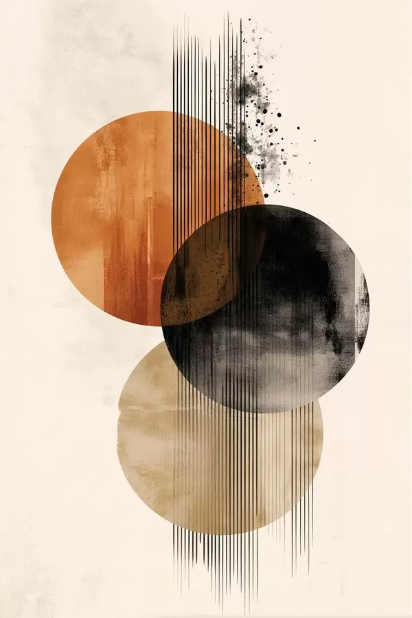 Poster Drie cirkels met textuur en lijnen in een terracotta-zwart kleurenpalet N° f45885