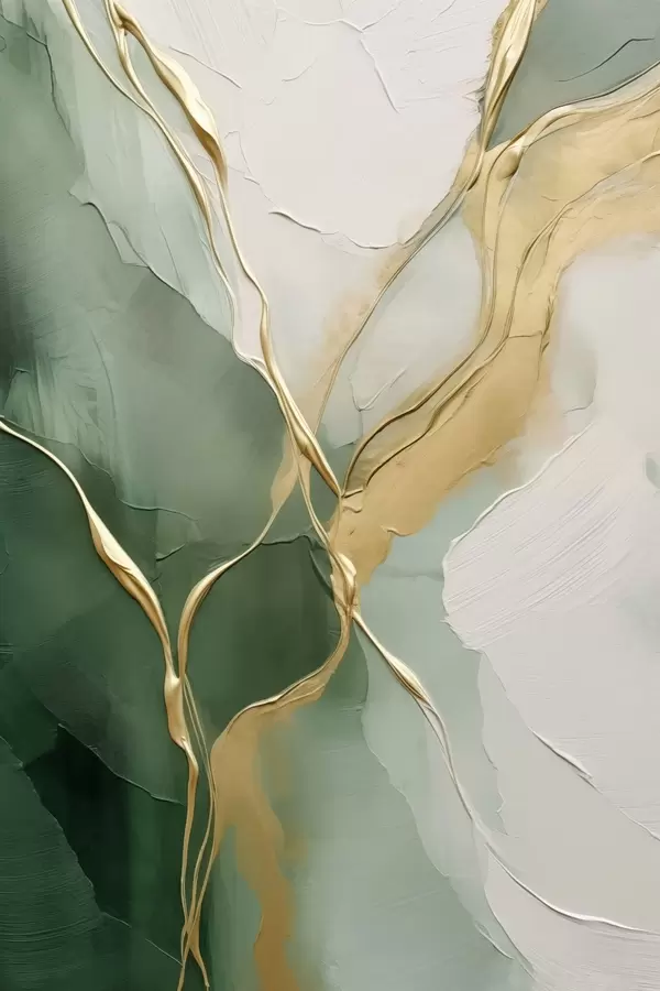 Poster Smaragdgroene abstractie met gele riviertjes N° f45887