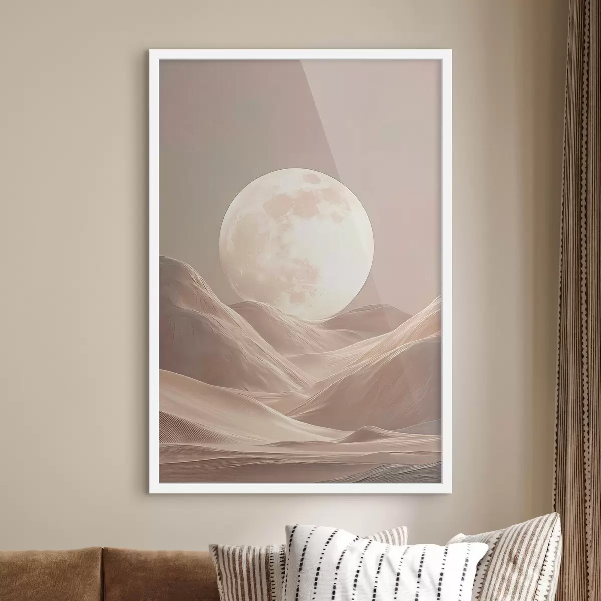 Poster Maan boven zandduinen in roze tinten N° f45892