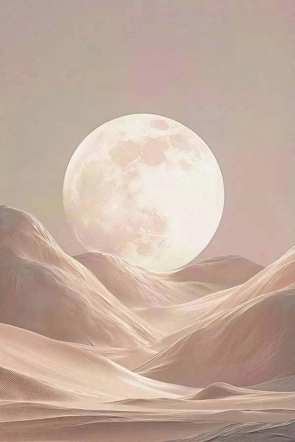 Poster Maan boven zandduinen in roze tinten N° f45892