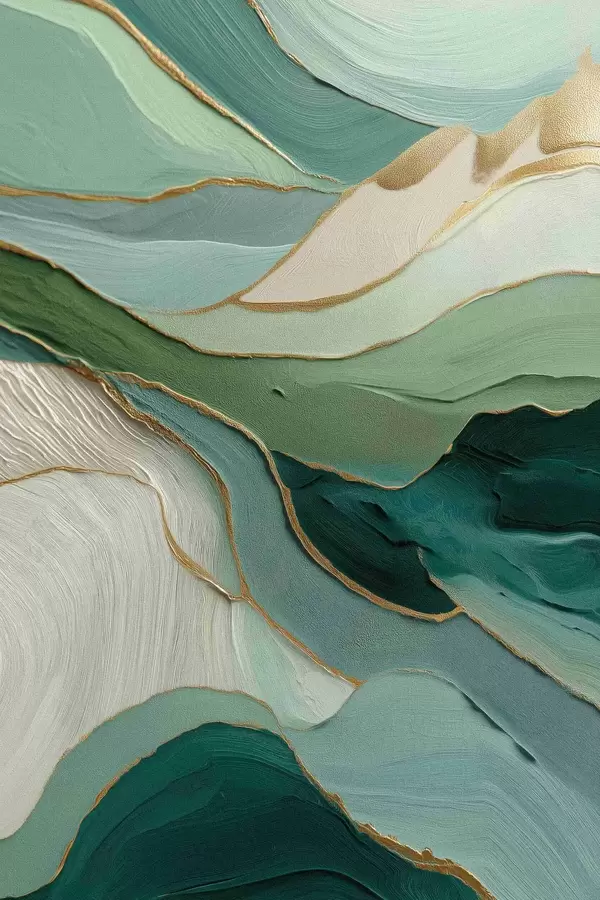 Poster Gelaagde groene abstractie met gele lijnen en diepte N° f45902