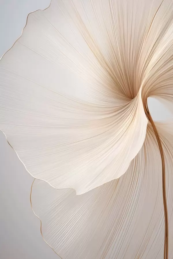 Poster Abstracte bloemen met dunne, delicate bloemblaadjes in witte en beige tinten N° f45922
