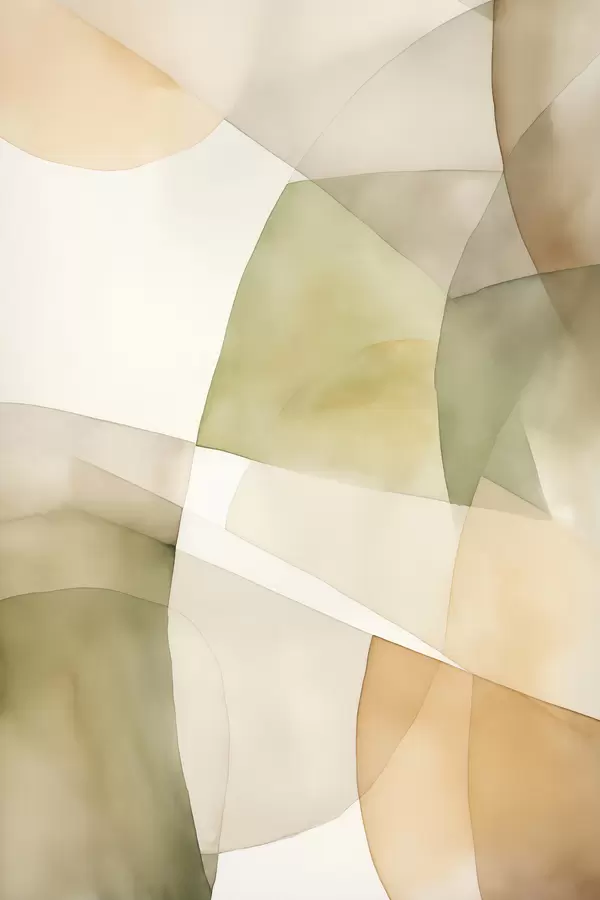 Poster Abstracte geometrische vormen met waterverftextuur in tinten groen, bruin en beige N° f45928