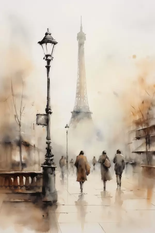 Poster Een regenachtige herfstdag in Parijs met de Eiffeltoren op de achtergrond en vintage straatlantaarns N° f45931