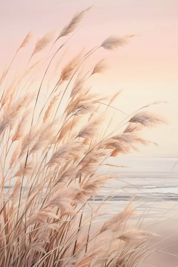 Poster Pampagras met pasteloranje kleurenpalet, lichtroze lucht, een rustig landschap N° f45934