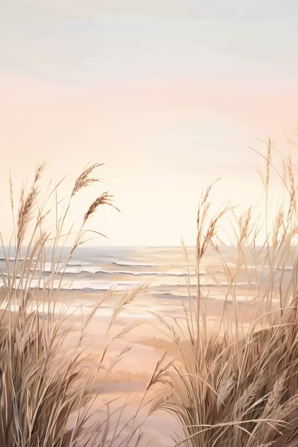 Poster Pampagras met pasteloranje kleurenpalet, lichtroze lucht, een rustig landschap N° f45935