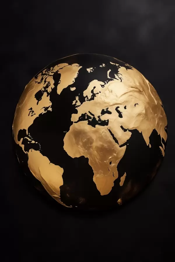 Poster Gele gestructureerde abstracte wereldbol, planeet op een zwarte achtergrond, moderne minimalistische kunst N° f45942