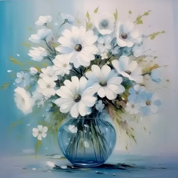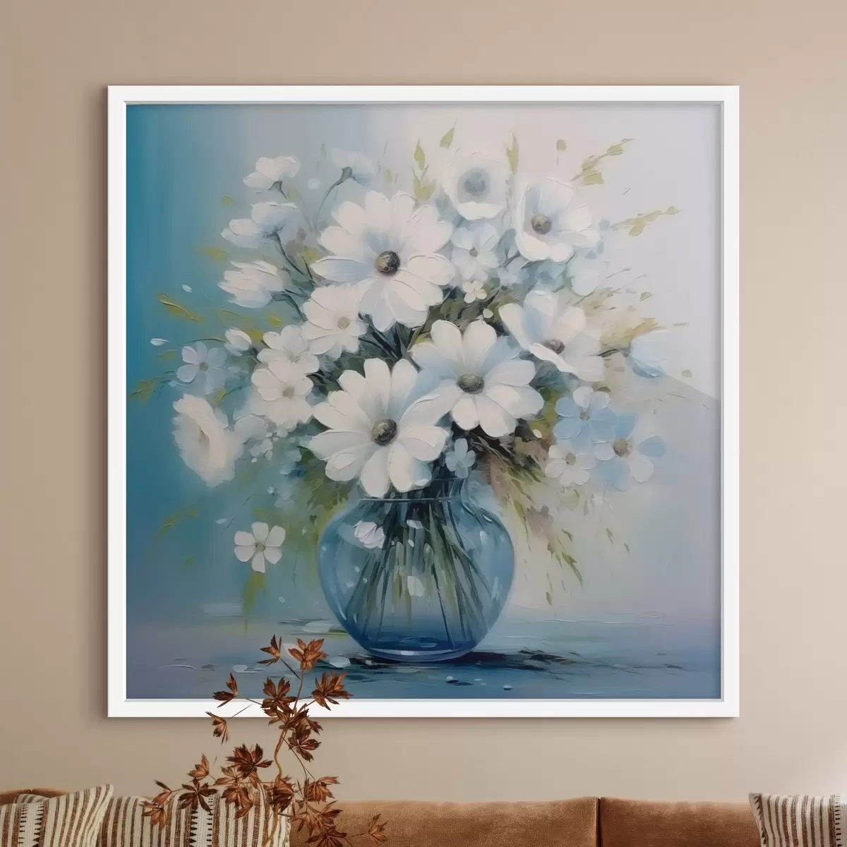 Poster Boeket madeliefjes in een blauwe vaas N° f45959