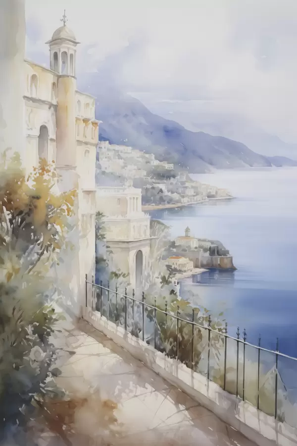 Poster Baai nabij de stad imitatie van aquarel N° f45979