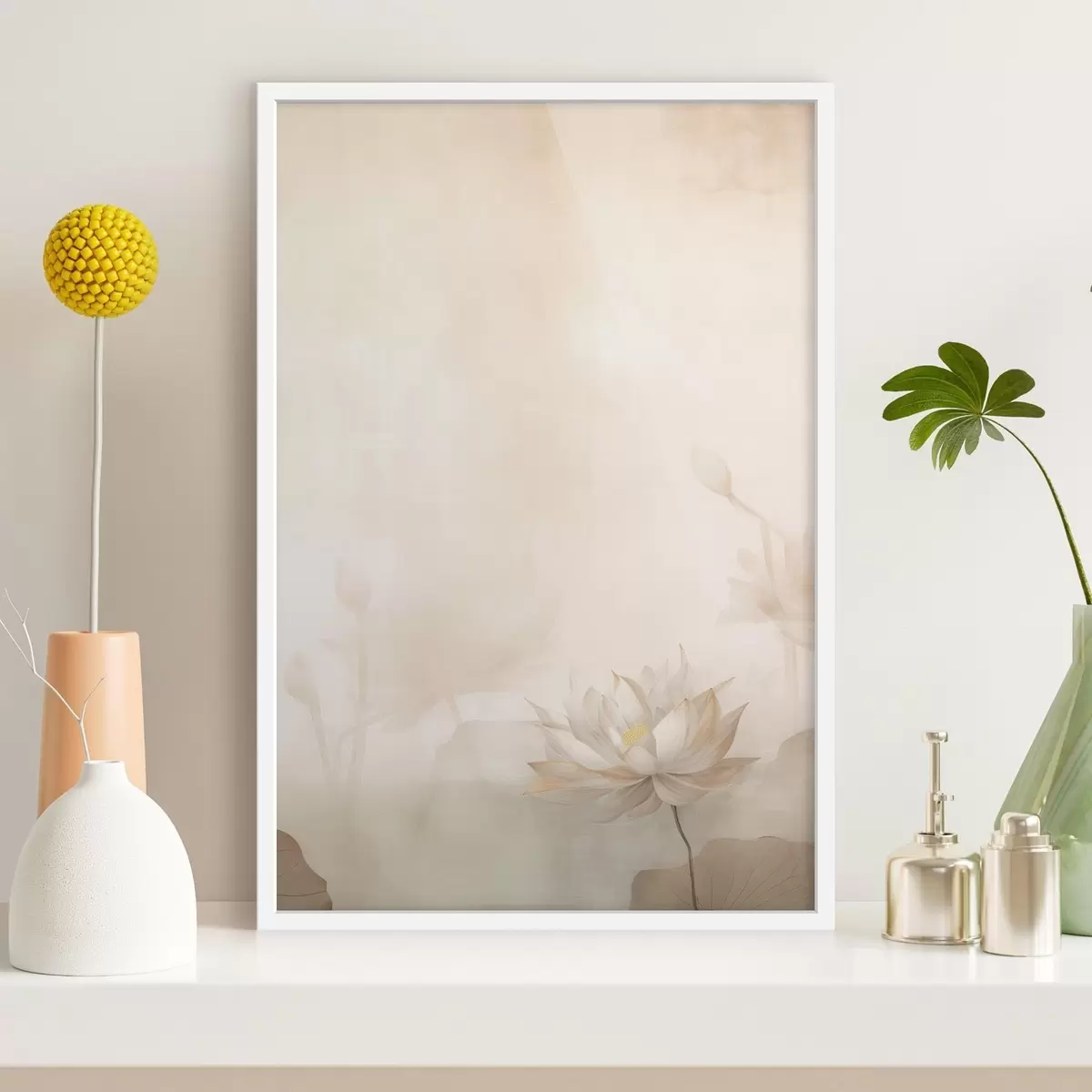 Poster Lotusbloem op een lichte achtergrond N° f46070