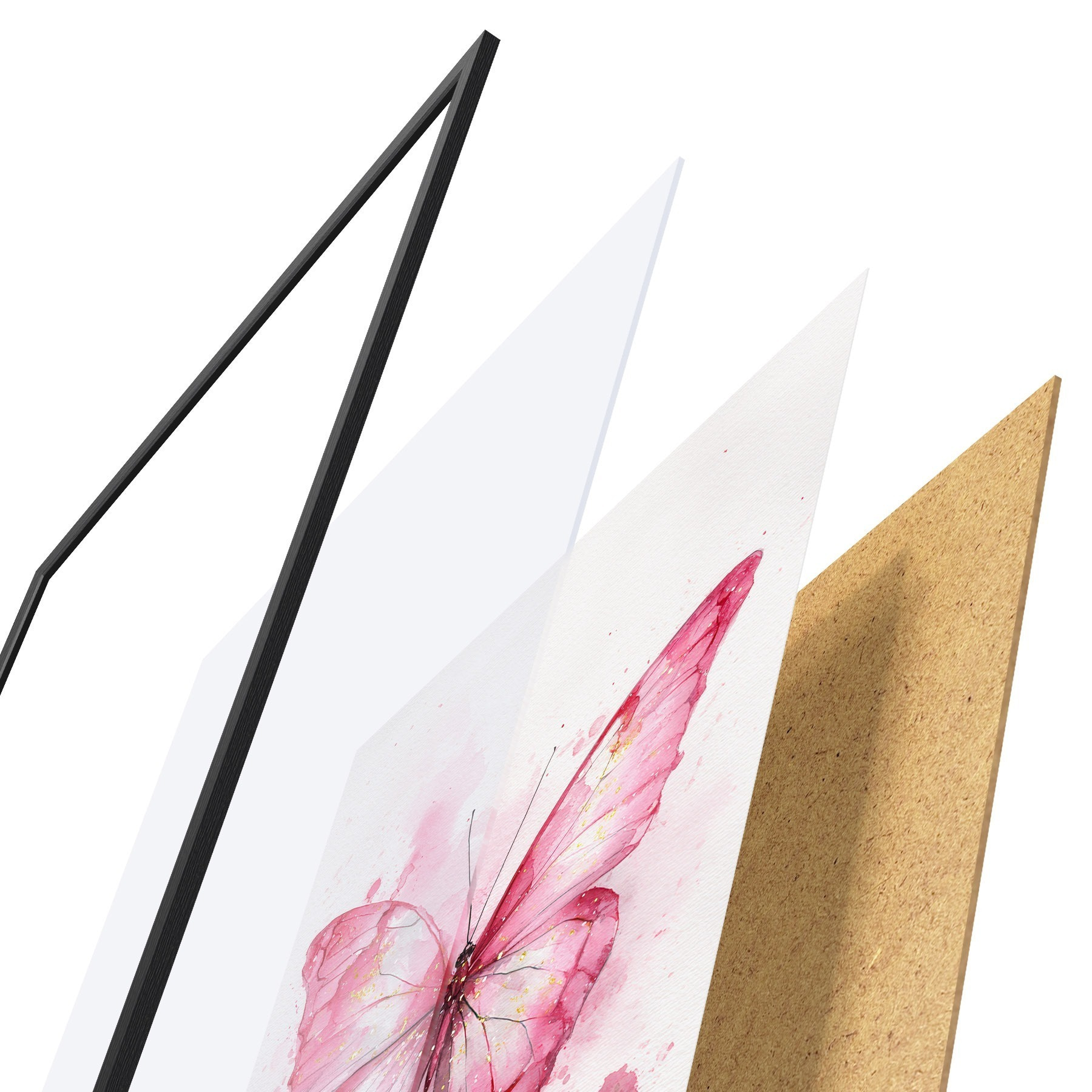 De poster bestaat uit een frame, plexiglas, geprinte afbeelding en spaanplaat achterkant. De poster kan meteen aan de muur worden gehangen dankzij de bevestigingen op de achterkant.