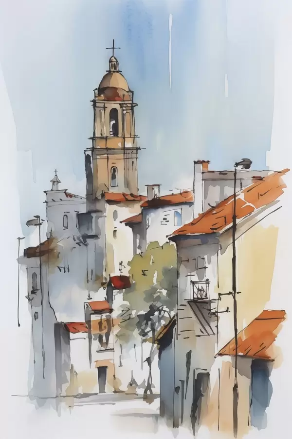 Poster Stadsgezicht imitatie aquarel N° f46120