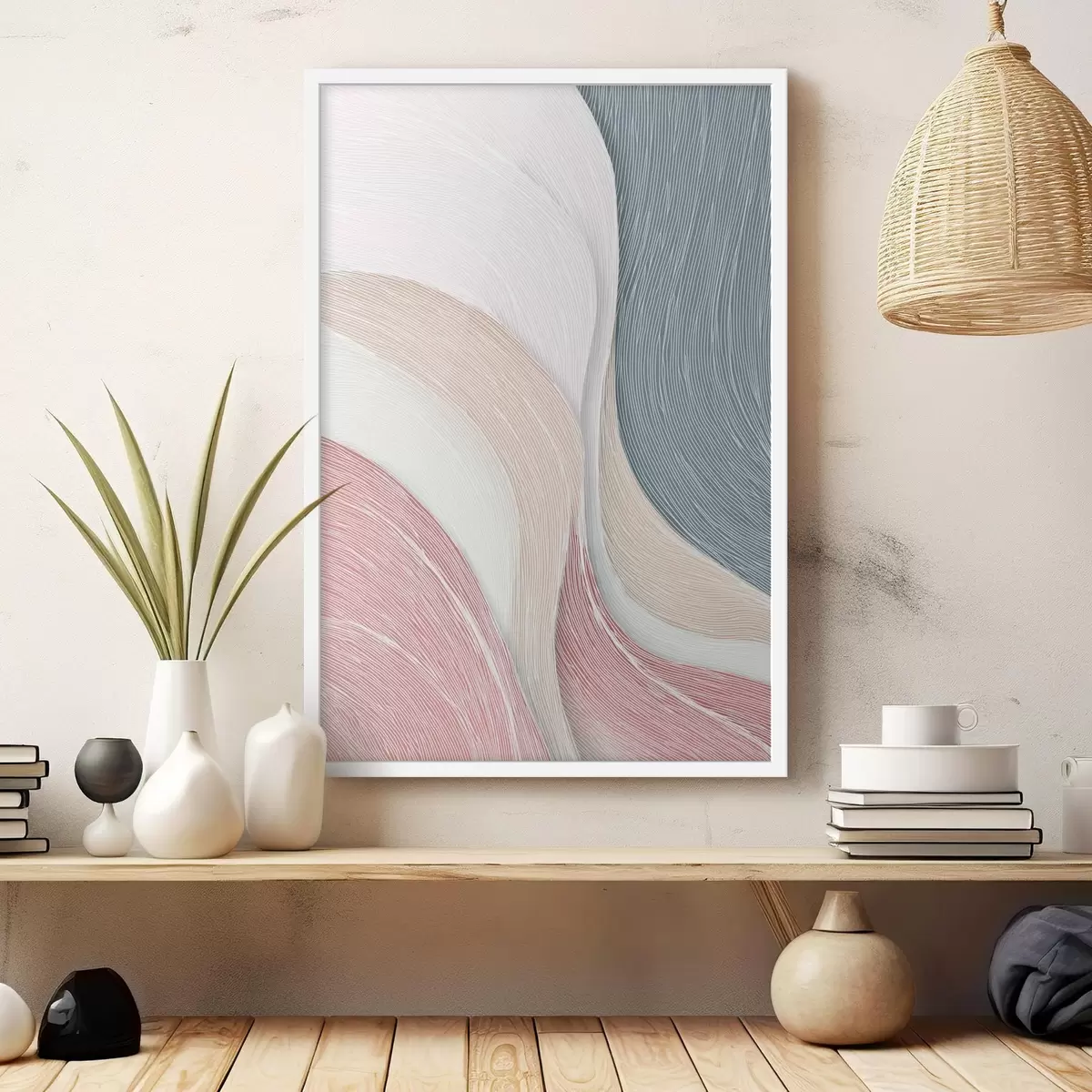 Poster Lichte abstracte golven in lichtroze en grijs-witte tinten f46153