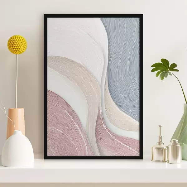 Poster Lichte abstracte golven in lichtroze en grijs-witte tinten N° f46153