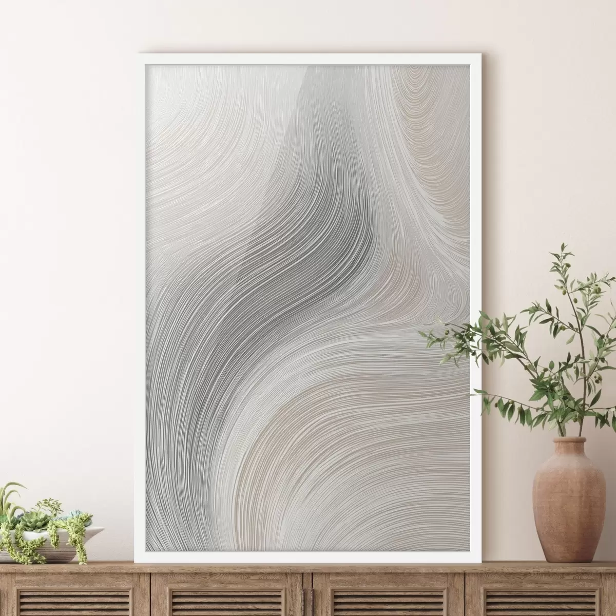 Poster Abstracte vloeiende lijnen in neutrale tinten f46154