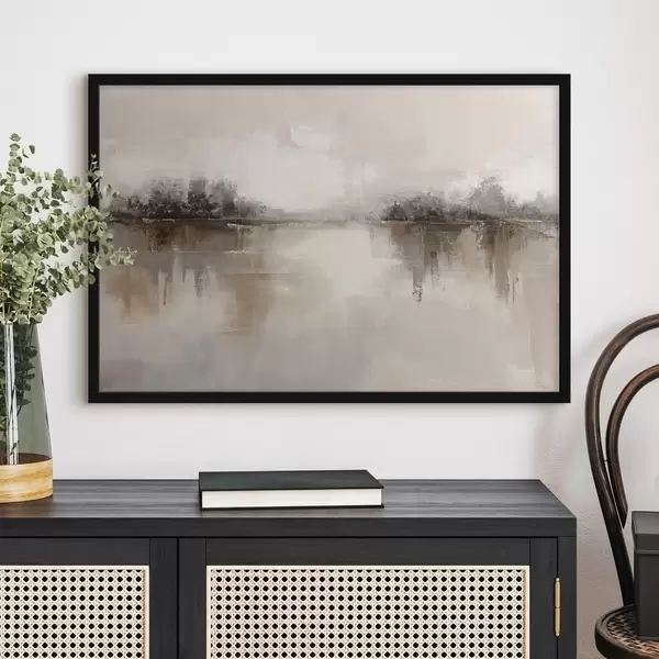 Poster Zacht landschap met een meer in warme beige-grijze tinten f46158
