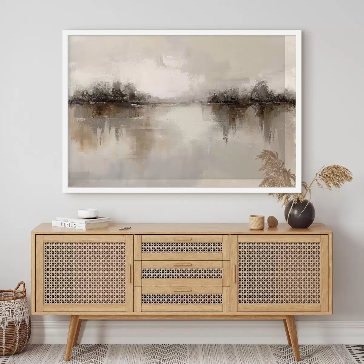 Poster Zacht landschap met een meer in warme beige-grijze tinten N° f46158