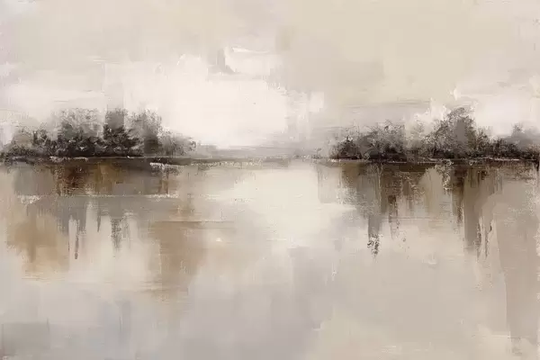Poster Zacht landschap met een meer in warme beige-grijze tinten N° f46158