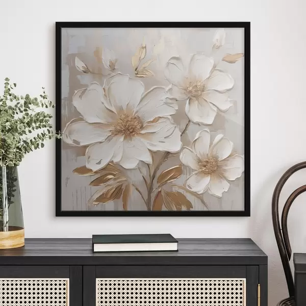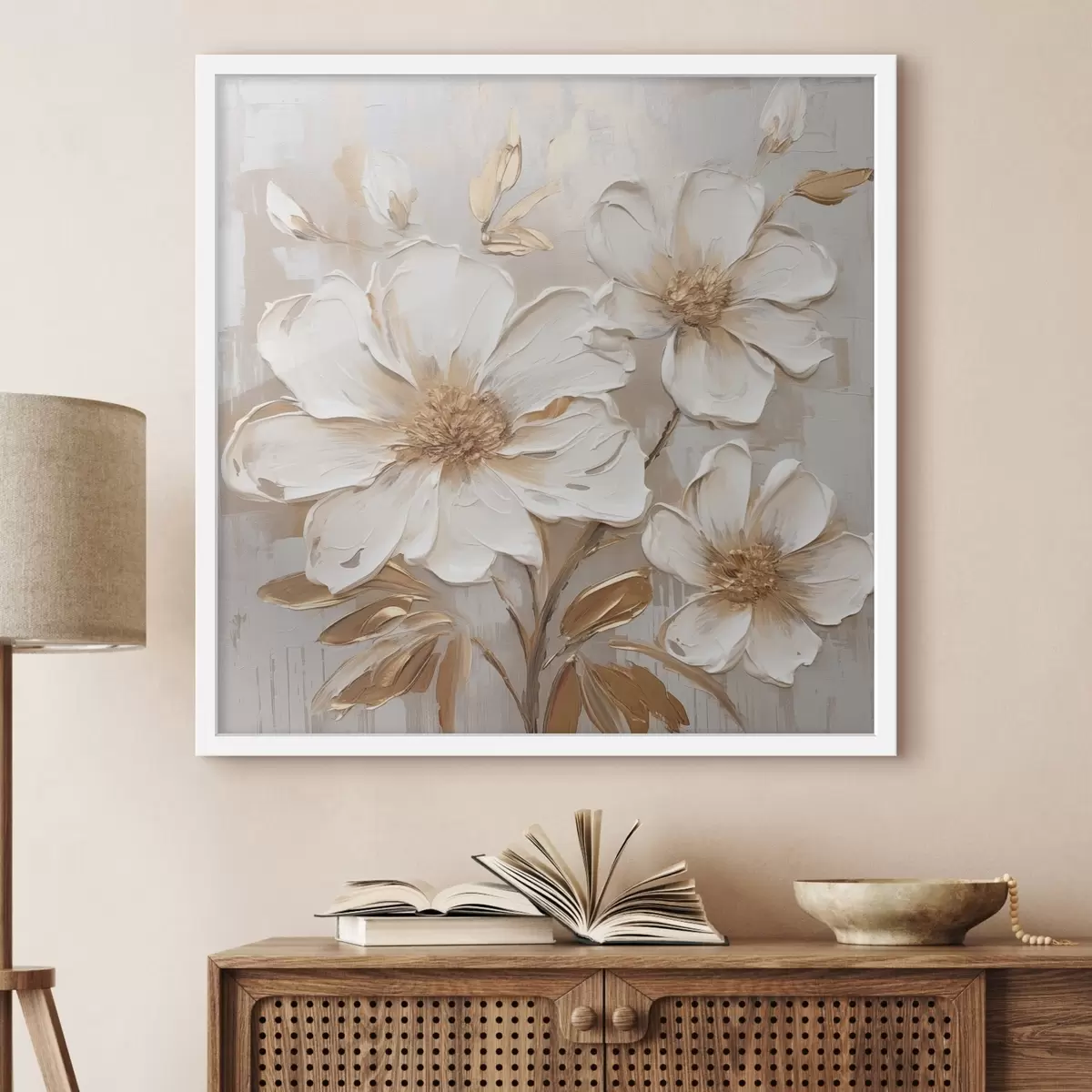 Poster Getextureerde bloemen op een lichte achtergrond met warme tinten N° f46166
