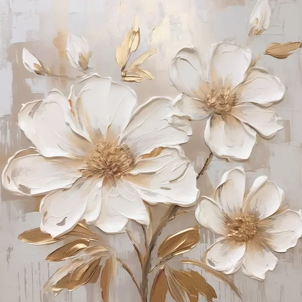 Poster Getextureerde bloemen op een lichte achtergrond met warme tinten N° f46166