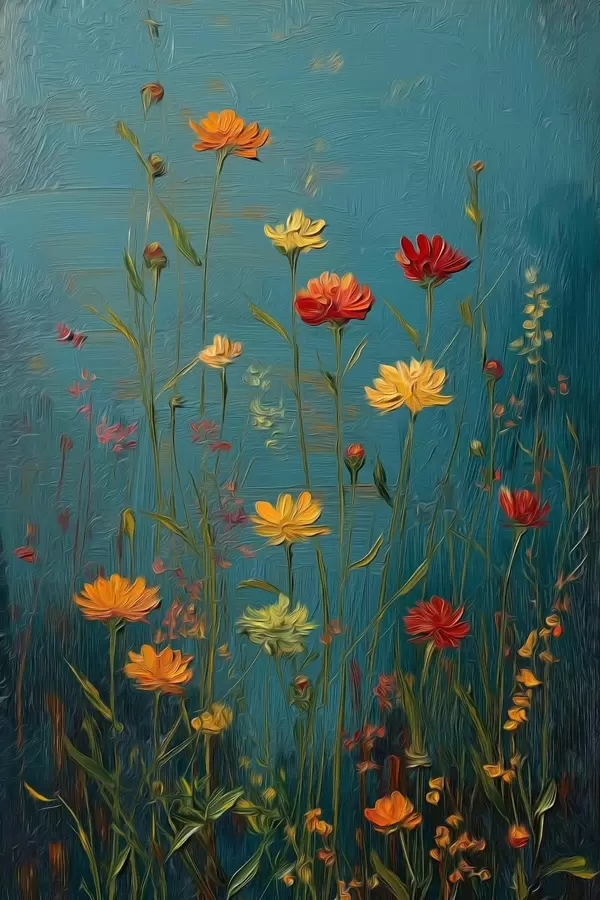 Poster Wilde bloemen op een diep turquoise achtergrond N° f46169