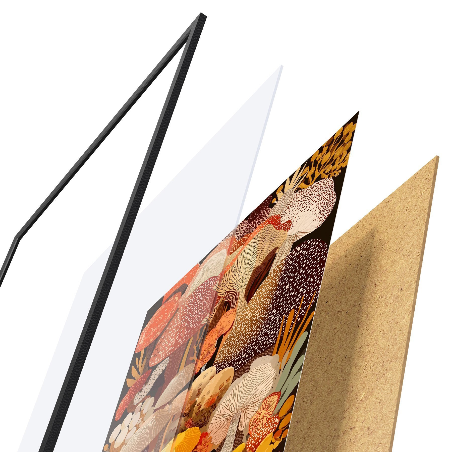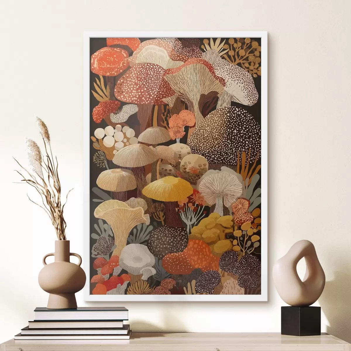 Poster Samenstelling van verschillende bospaddestoelen in warme tinten N° f46170