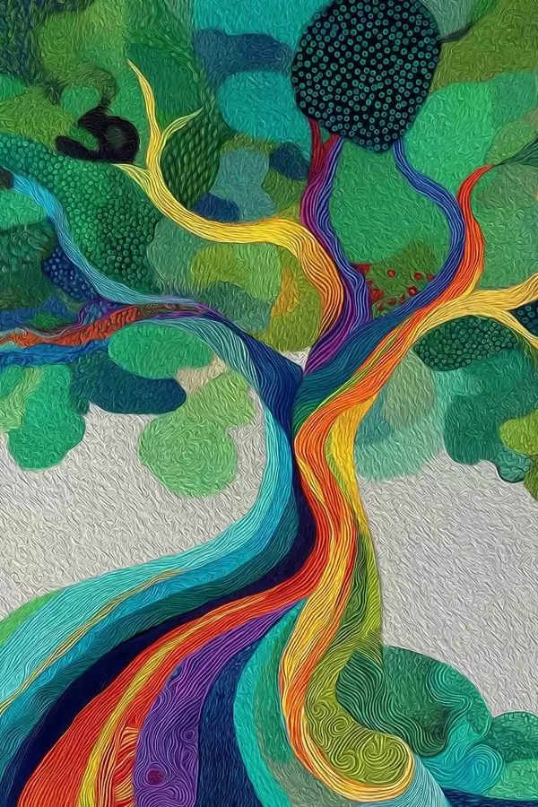 Poster Boom met regenboogtakken op een groene achtergrond N° f46173