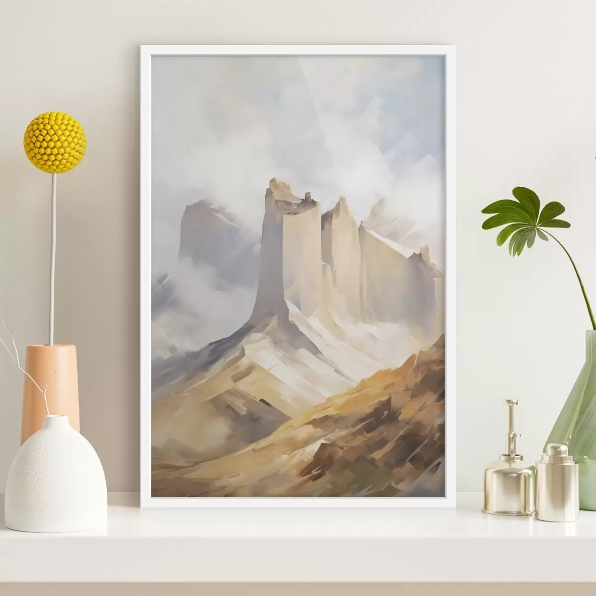 Je kunt het schilderij ophangen aan schroeven. Hiervoor leveren we bevestigingen bij onze foto's, zodat je de foto gemakkelijk kunt ophangen.