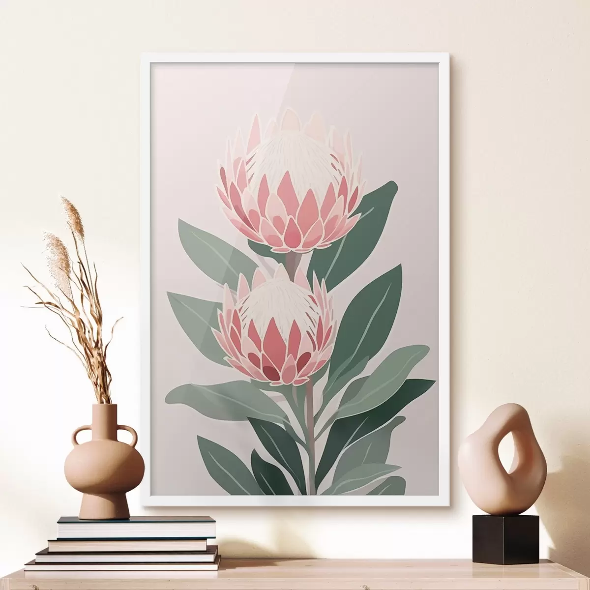De poster bestaat uit een frame, plexiglas, geprinte afbeelding en spaanplaat achterkant. De poster kan meteen aan de muur worden gehangen dankzij de bevestigingen op de achterkant.
