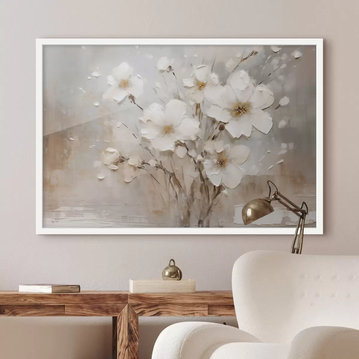 Je kunt het schilderij ophangen aan schroeven. Hiervoor leveren we bevestigingen bij onze foto's, zodat je de foto gemakkelijk kunt ophangen.