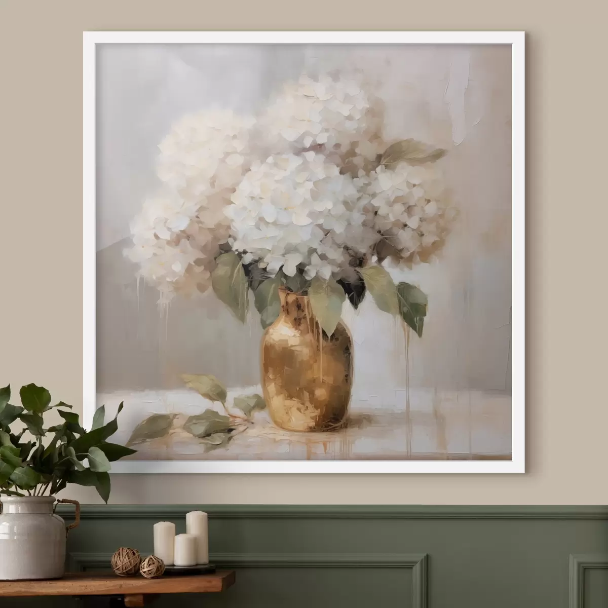 Poster Delicaat boeket hortensia's in een vaas N° f46263
