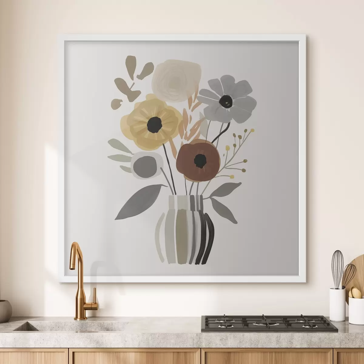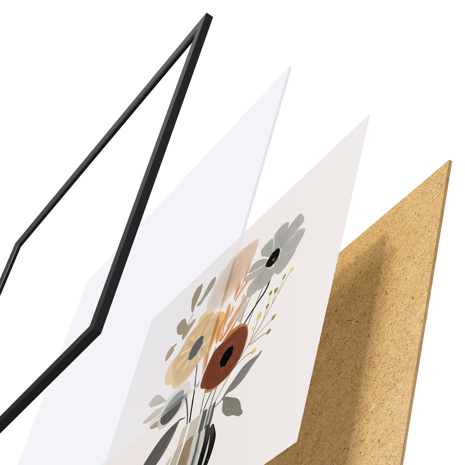 De poster bestaat uit een frame, plexiglas, geprinte afbeelding en spaanplaat achterkant. De poster kan meteen aan de muur worden gehangen dankzij de bevestigingen op de achterkant.