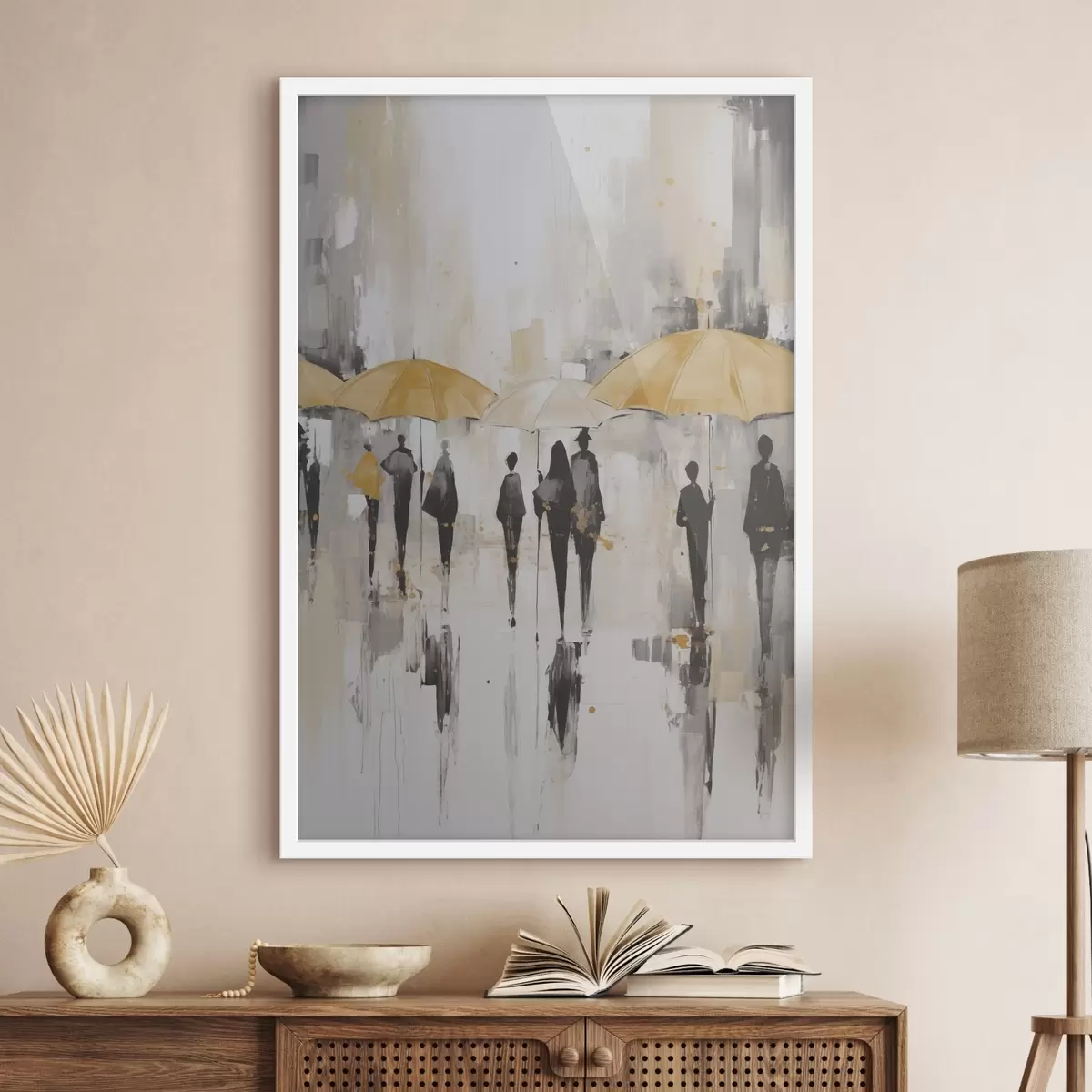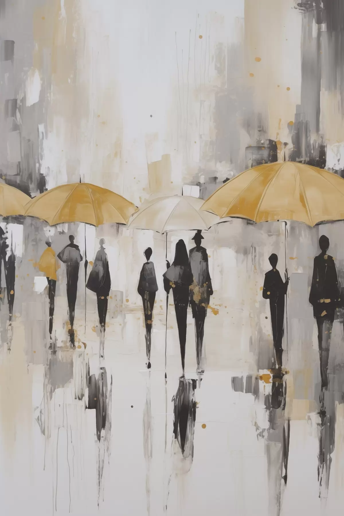 Poster Abstractie van mensen met paraplu's N° f46304