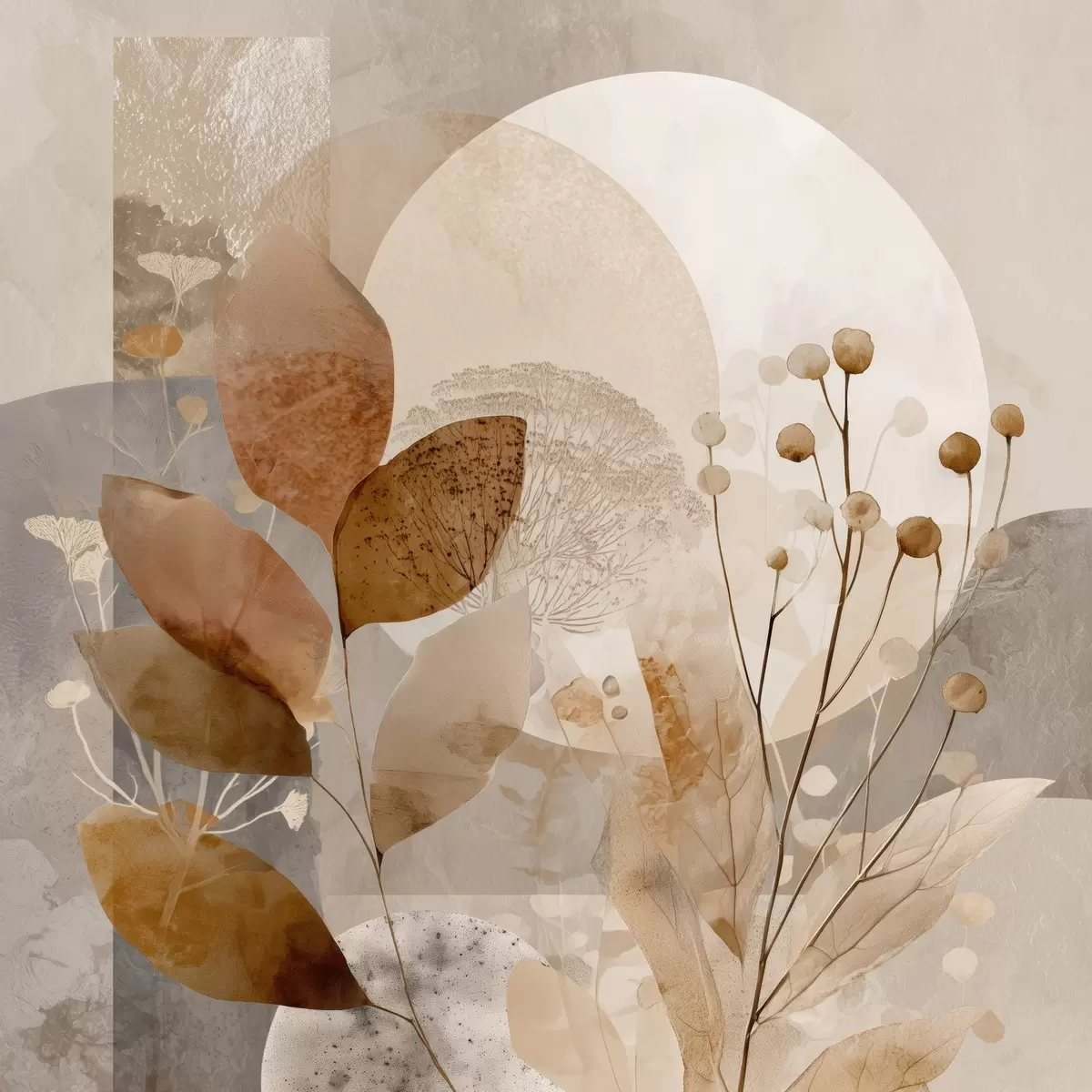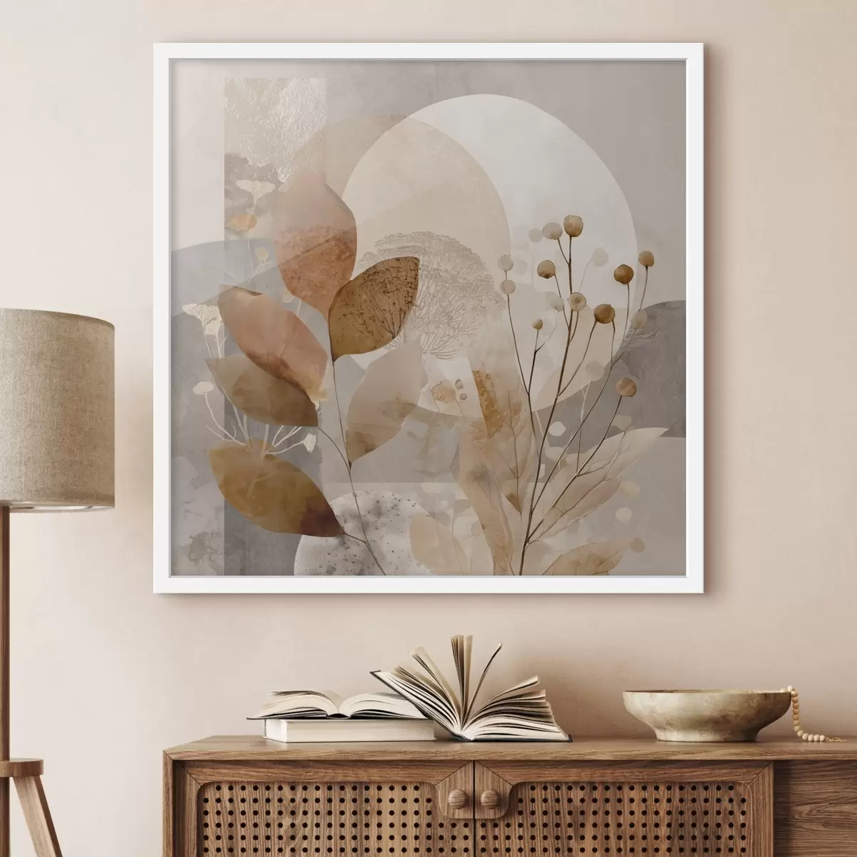 Poster Bloemenpatroon in beige en bruin N° f46308