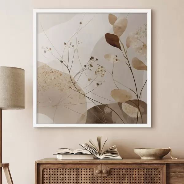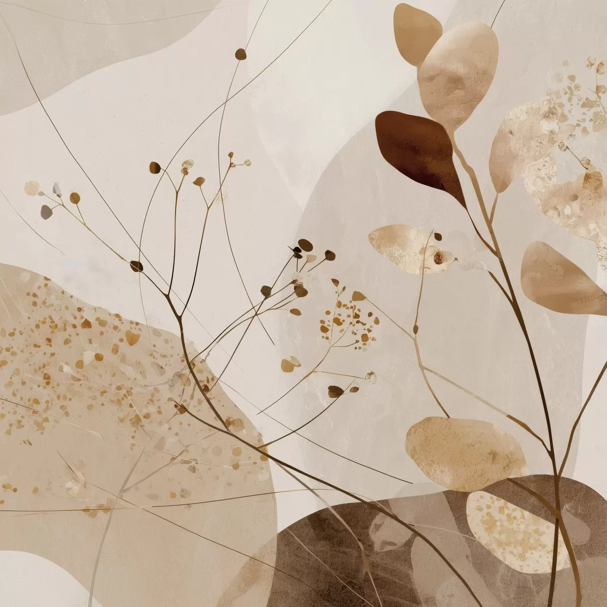 Poster Abstracte vormen en plantmotieven in beige tinten N° f46309