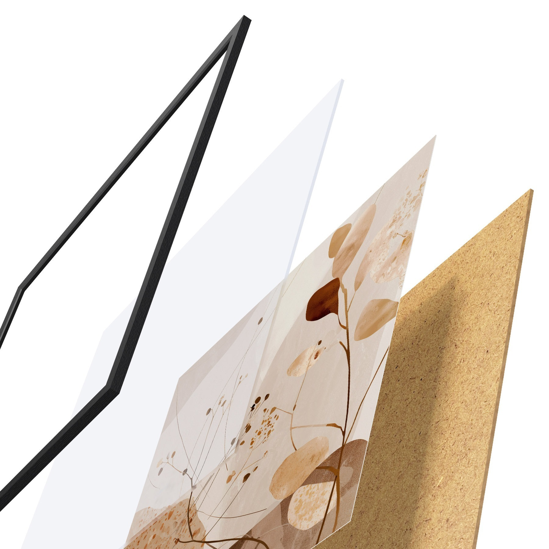 Poster Abstracte vormen en plantmotieven in beige tinten f46309