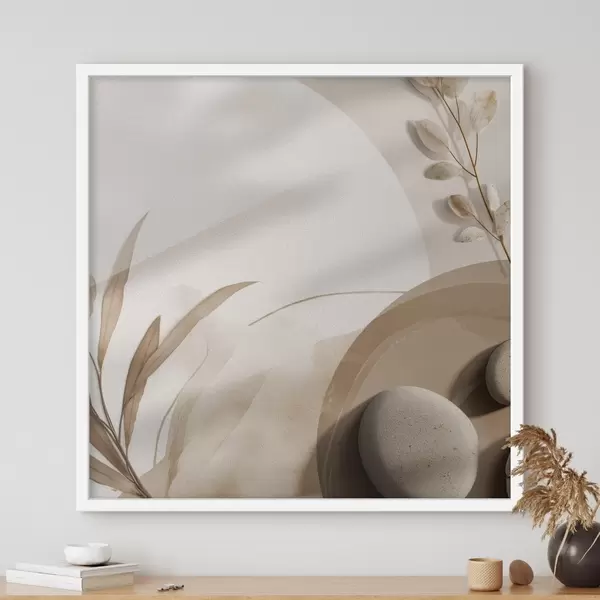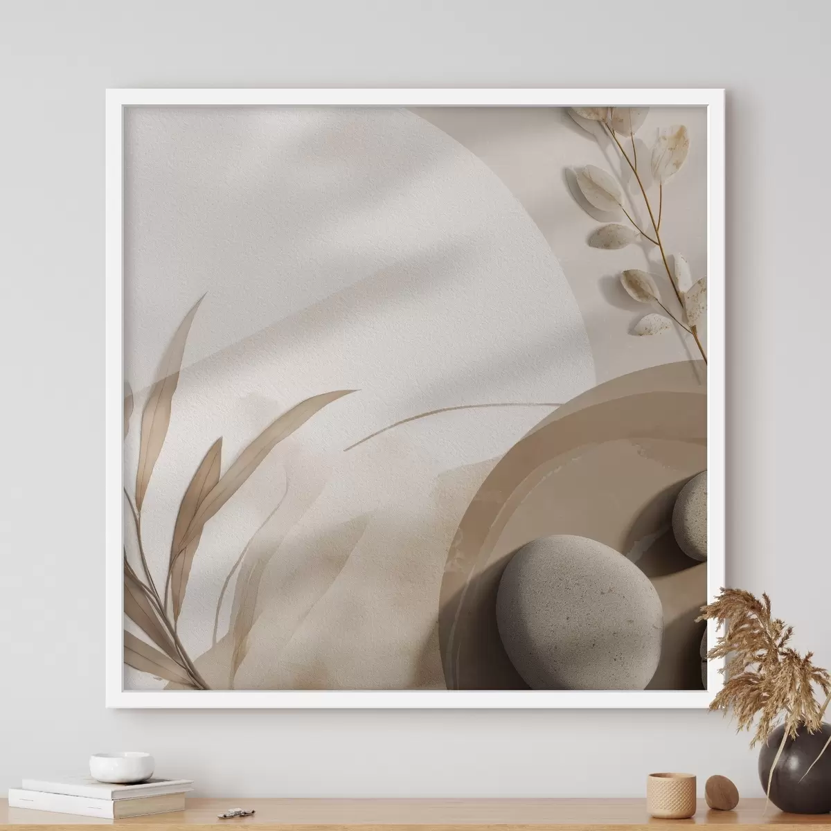 Poster Stenen en schaduwen op de muur in beige tinten N° f46311