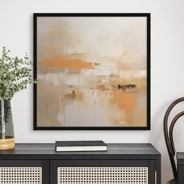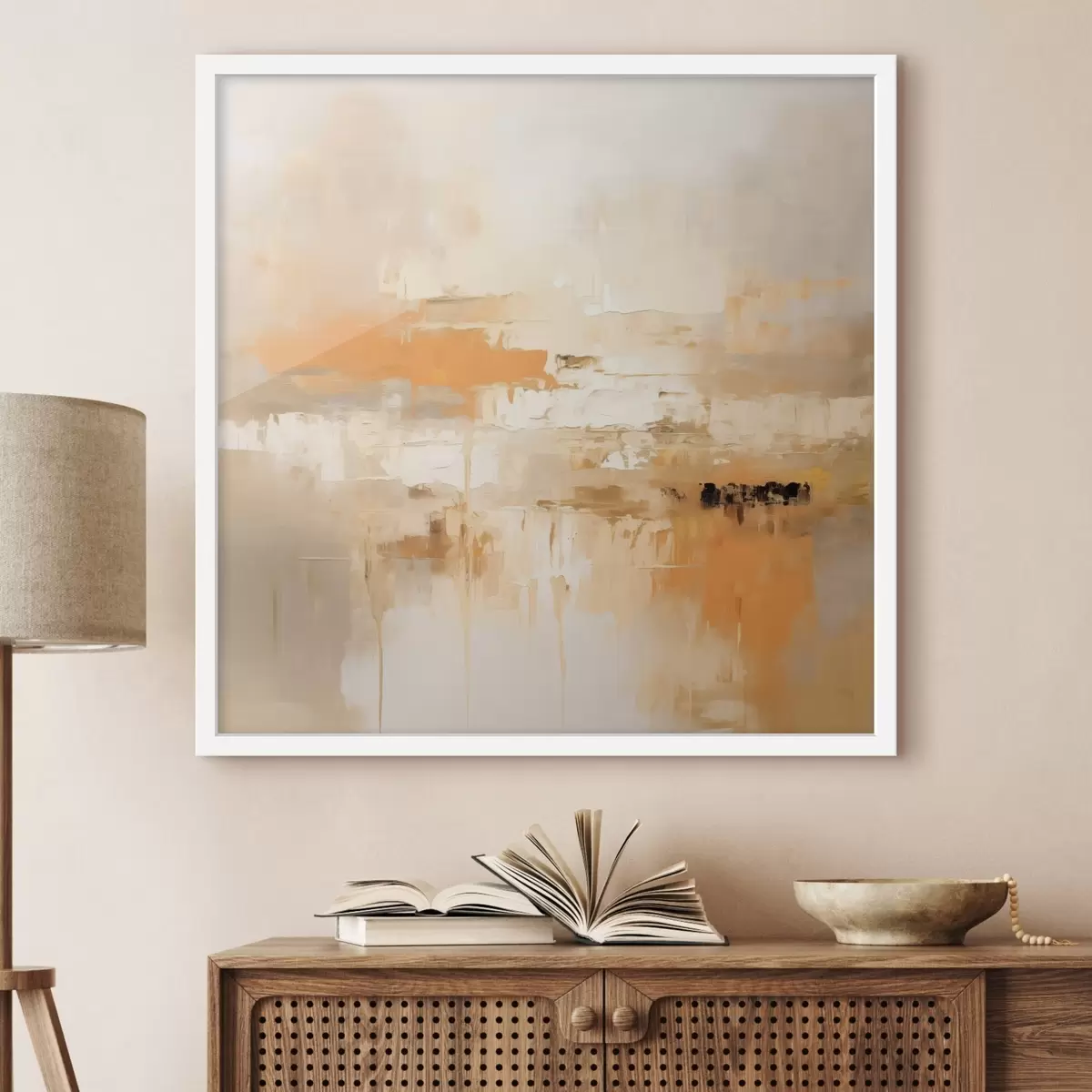 Poster Landschapsabstractie in olieverfstijl met oranje en beige tinten N° f46314