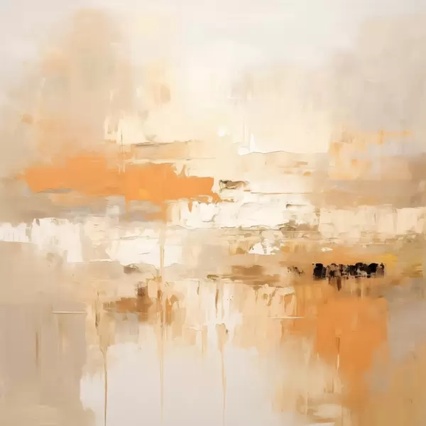 Poster Landschapsabstractie in olieverfstijl met oranje en beige tinten N° f46314