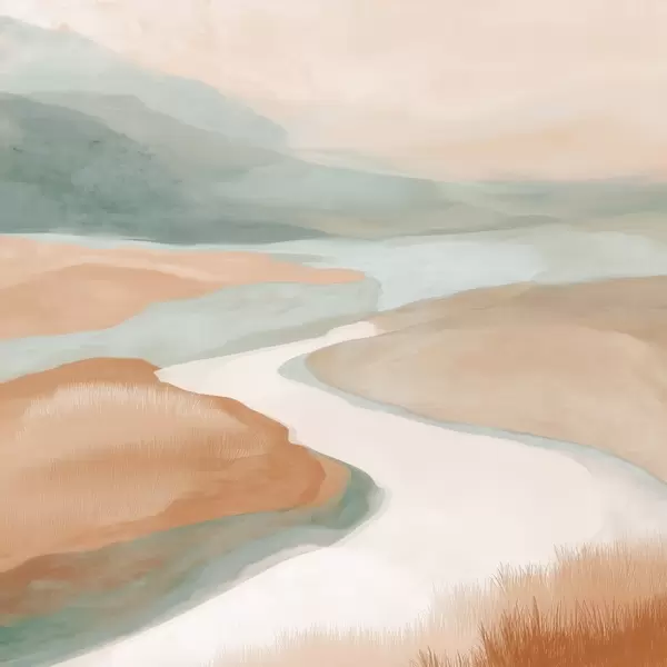 Poster Abstract landschap met een rivier in oranje en groen N° f46316
